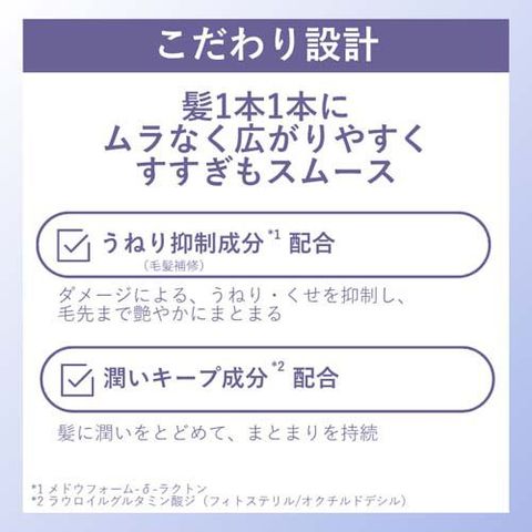 ●パサつきを抑え保湿感が持続する潤いキープ成分配合※1※1ラウロイルグルタミン酸ジ(フィトステリル/オクチルドデシル)