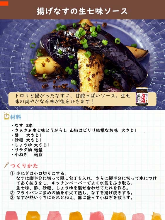 ●従来の乾燥タイプの七味唐辛子と同じ使い方(めん類・鍋物・汁物・丼物・焼とり等)はもちろんの事、そのままごはんのお供や冷奴等にも使える、しっとりタイプの味付七味です。