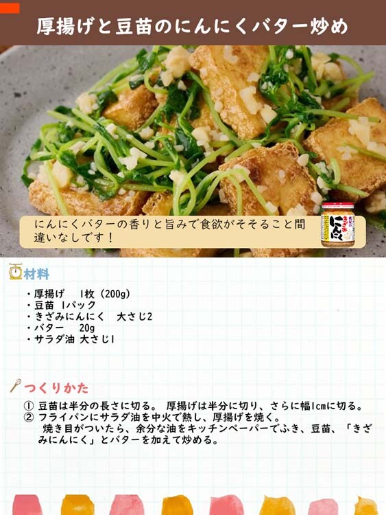 ●丁寧に刻んだにんにくをなたね油に包み、さらにロースト感のある香ばしさを加えました。こうする事により、生のにんにくを刻んだだけでは味わえない、にんにくの旨みと香ばしさを併せ持った商品に仕上げる事ができました。