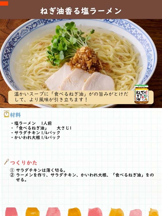 ●長ねぎの旨味と甘い香りを感じられるようにメーカー自社が抽出した「ねぎ油」を使用。