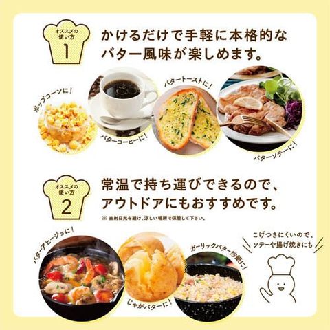 ●液状なので、サッとかけるだけでトーストやバターコーヒー、料理に手軽にお使い頂けます。