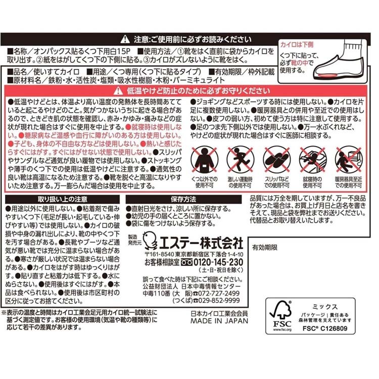 ●用途:使いすてカイロ くつ専用(くつ下に貼るタイプ)