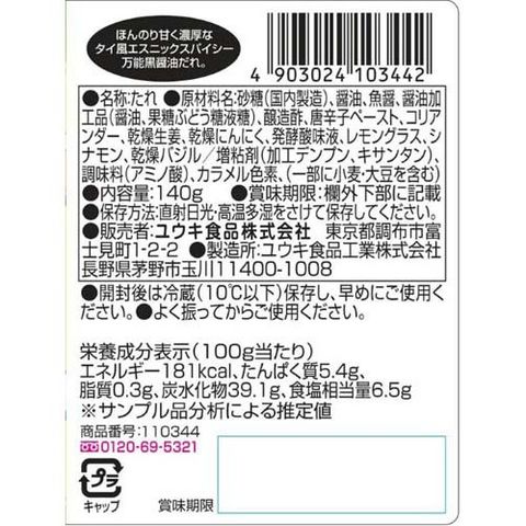 | 砂糖(国内製造)、醤油、魚醤、醤油加工品(醤油、果糖ぶどう糖液糖)、醸造酢、唐辛子ペースト、コリアンダー、乾燥生姜、乾燥にんにく、発酵酸味液、レモングラス、シナモン、乾燥バジル/増粘剤(加工デンプン、キサンタン)、調味料(アミノ酸)、カラメル色素、(一部に小麦・大豆を含む) |
