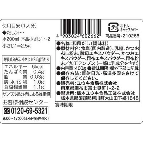 ユウキ食品 やさしい味わいの和風だし (400g)