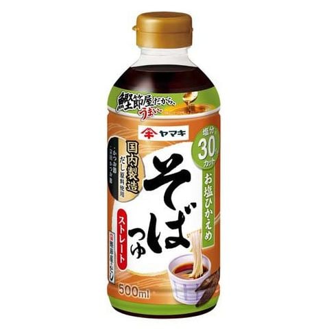 ●国内製造だし原料を使用した、塩分30%カット(※)のストレートそばつゆ。※日本食品標準成分表(八訂)増補2023年めんつゆストレート比