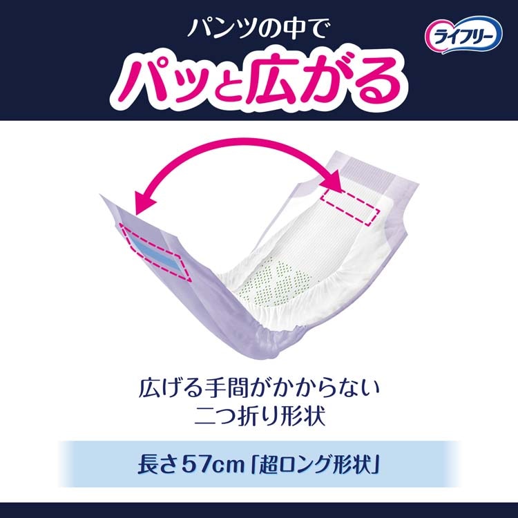 ●紙パンツの中にキレイに収まる最長57cmなので、ぴったりフィットしモレ安心