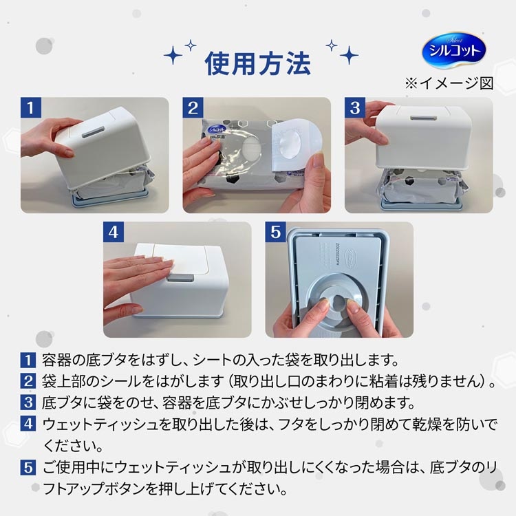 (4)ウェットティッシュを取り出した後は、フタをしっかり閉めて乾燥を防いでください。