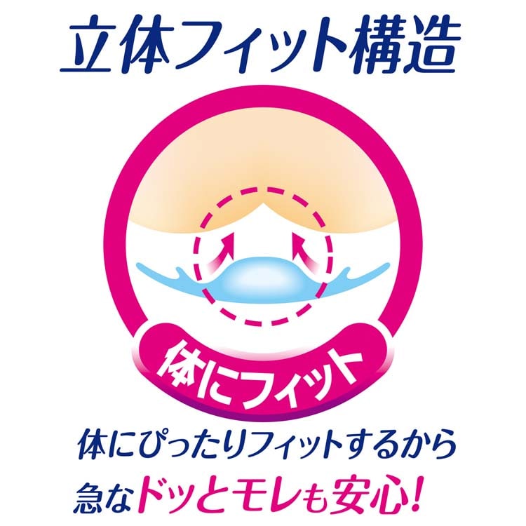 ●立体フィット構造で、体にぴったりフィットし急な尿モレもスピード吸収!