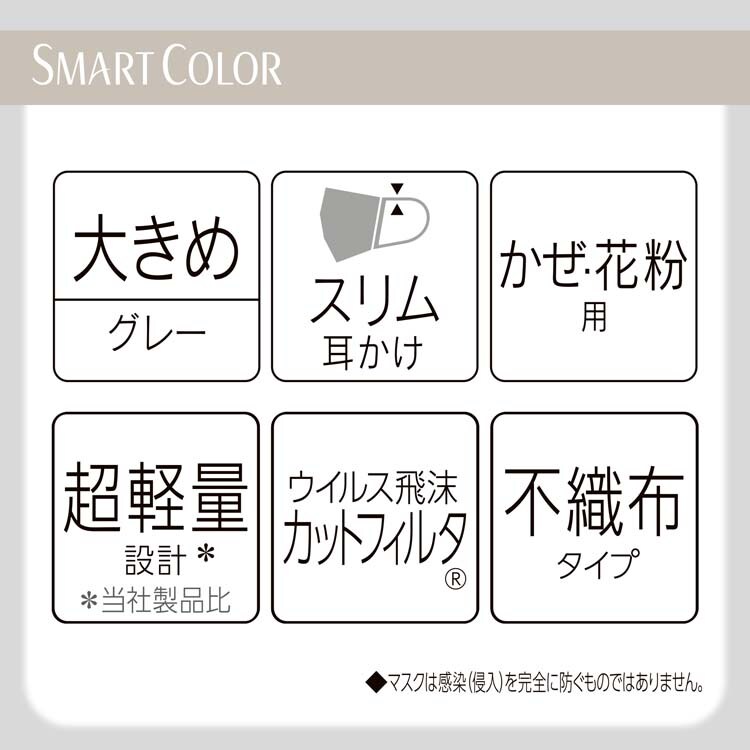 【SMART COLOR Ash Gray 大きめ 不織布マスクの商品詳細】