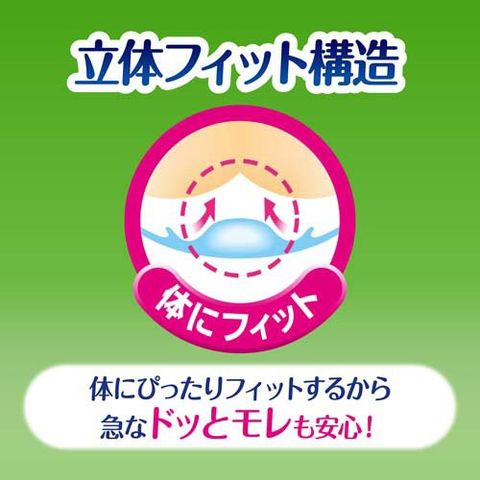 ●立体フィット構造で、体にぴったりフィットし急な尿モレもスピード吸収!