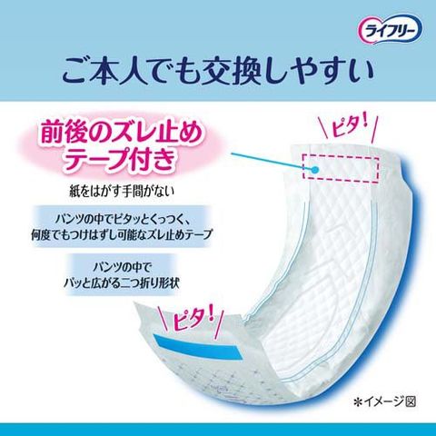 ●紙パンツ用パッドならズレ止めテープが紙パンツにピタッとくっつくので、ご本人でも簡単に交換できる!