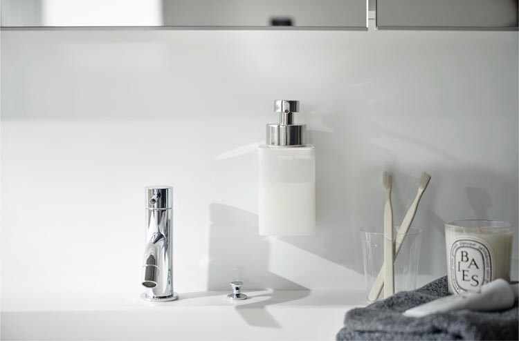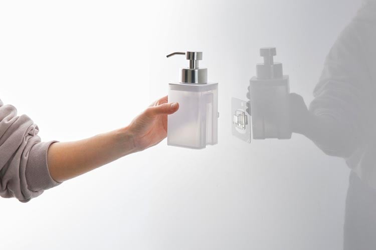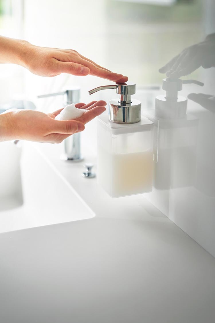 ●フィルムフックで浮かせて設置できる泡タイプのディスペンサー。