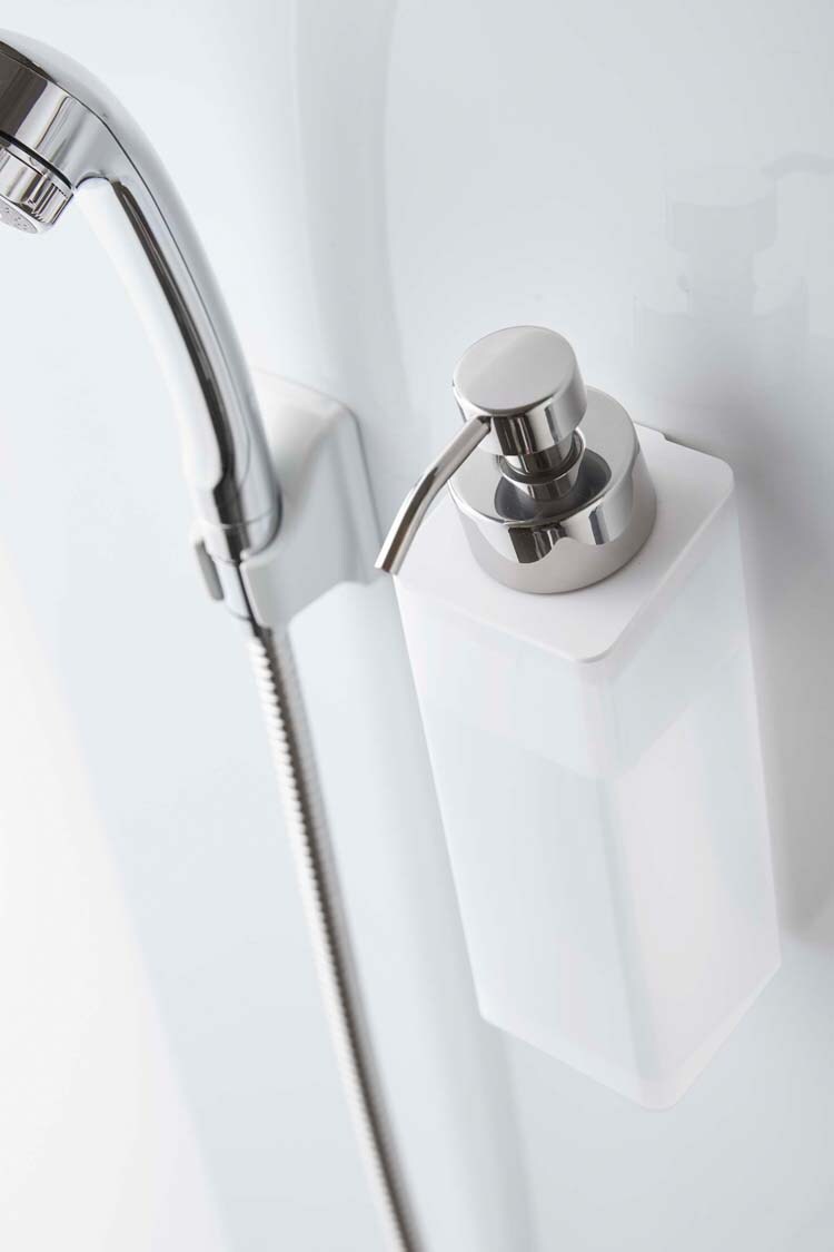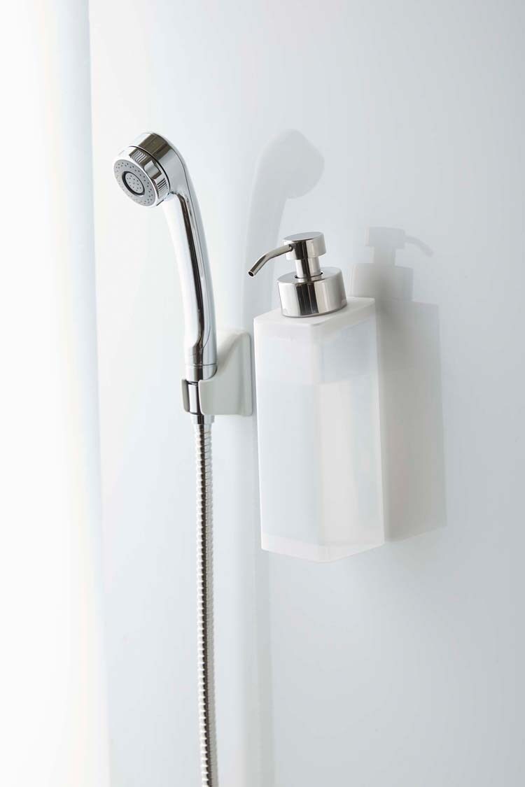 ●マグネットが付く浴室壁面に簡単取り付けの泡タイプディスペンサーボトル。