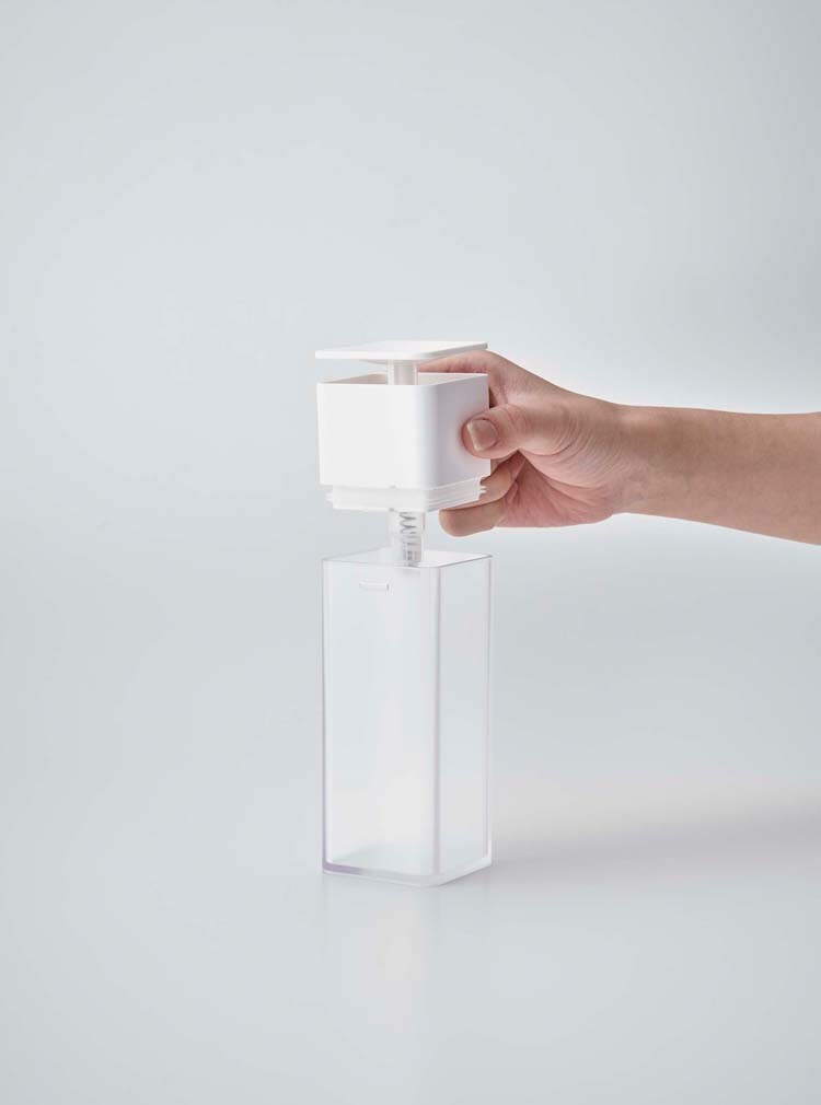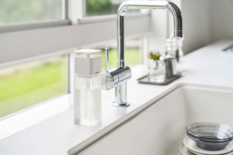 ●片手で押すだけでスポンジに直接洗剤が付く便利なディスペンサー。