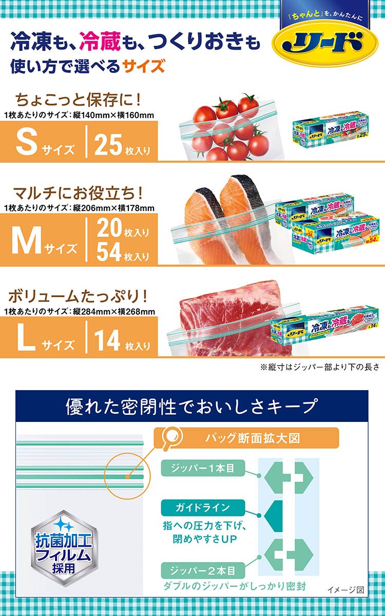 【リード 冷凍も冷蔵も 新鮮保存バッグ Lの商品詳細】