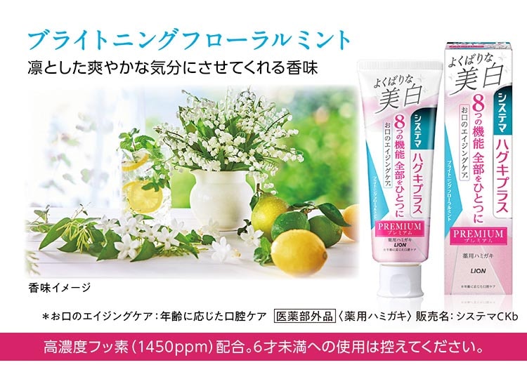 【システマ ハグキプラス プレミアムハミガキ 美白 ブライトニングフローラルミントの商品詳細】