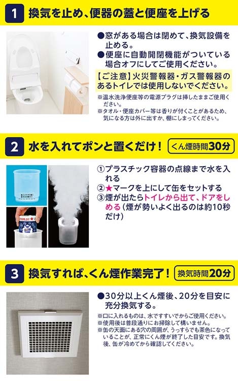 ※煙が見えなくなれば、ニオイが残っていても問題なくトイレを使用できます。