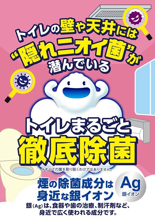 ●銀イオンの煙がすみずみにいきわたり、壁や天井、タンク裏など掃除がゆきとどかない場所やホコリに潜むニオイ菌まで徹底除菌※!