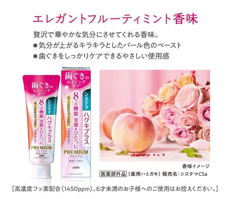【システマ ハグキプラス プレミアム ハミガキ エレガントフルーティミントの商品詳細】