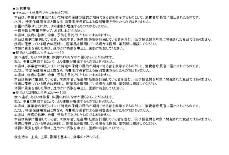 ★明治オリゴ糖ミルクチョコレート100:一日摂取目安量を守って、お召し上がりください。