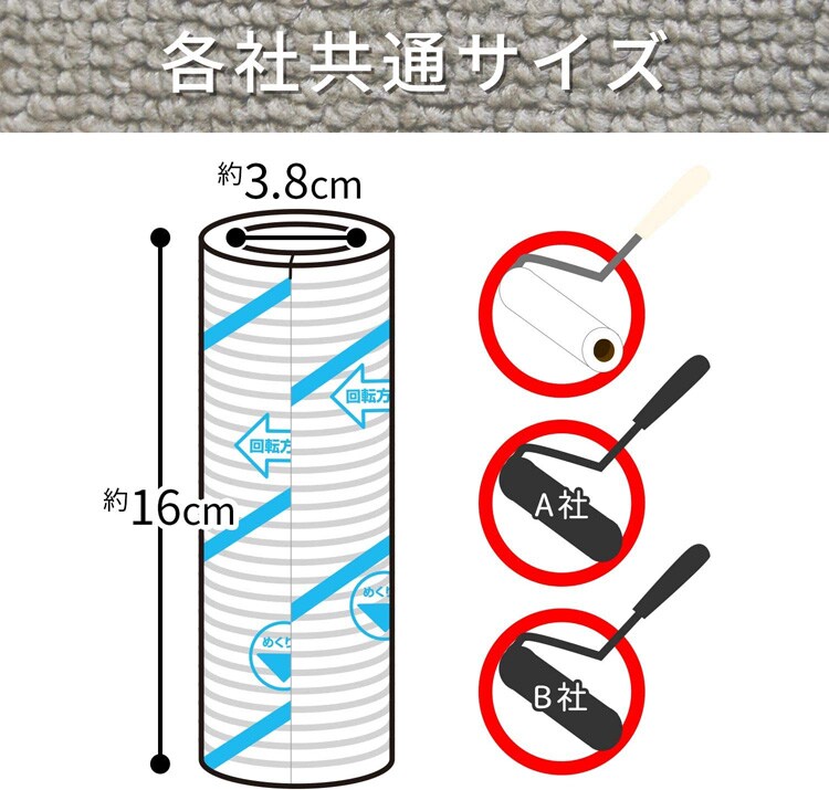 | 用途:カーペット用 本体サイズ:幅160mm*70周巻*4巻(各社共通サイズ) テープ:粘着加工紙 |