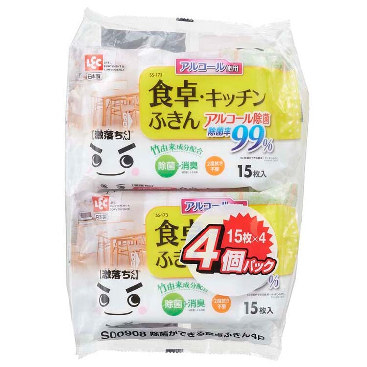 激落ちくん Ba 除菌ができる食卓・キッチンふきん S00908 (15枚*4個入)