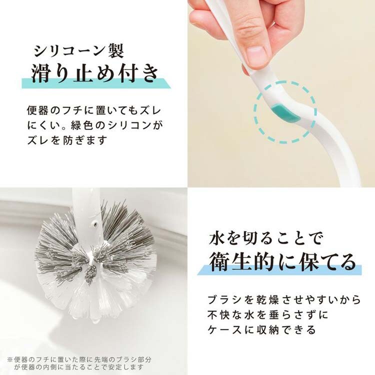 ●便器のフチに置いて衛生的に水切りができるトイレブラシです。