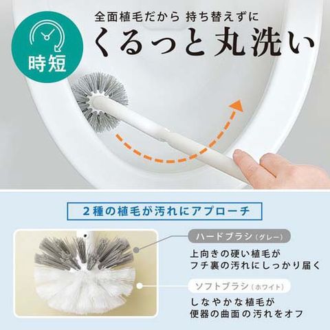 ●全面植毛ブラシで、向きを気にせずくるっと丸洗いできます。