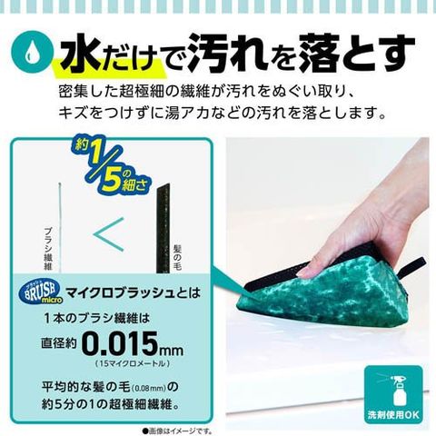 ●なめらかな超極細のソフト繊維ブラシが、キズをつけずに浴槽に付着した湯アカ等の汚れを落とします。