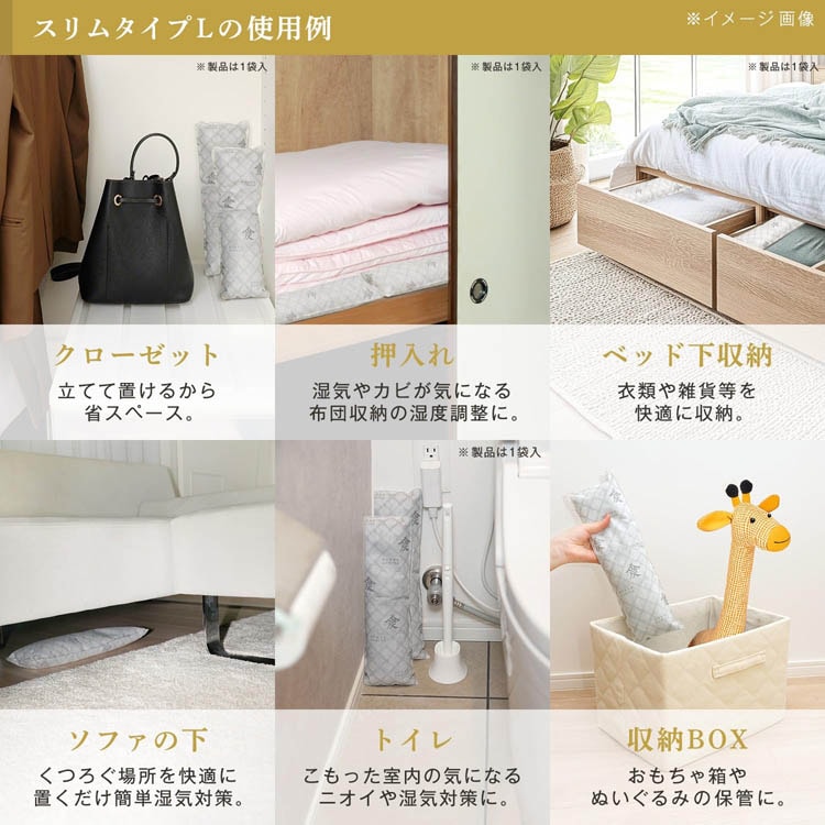 ●スリムタイプのため、立てても横にしても置けます。クローゼットや押入れ、トイレの隅に最適です。