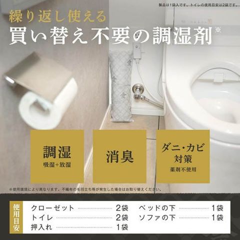 ●湿気が多いときは吸収し、乾燥しているときは放出して、ダニやカビが発生しにくい快適な湿度を保ちます。
