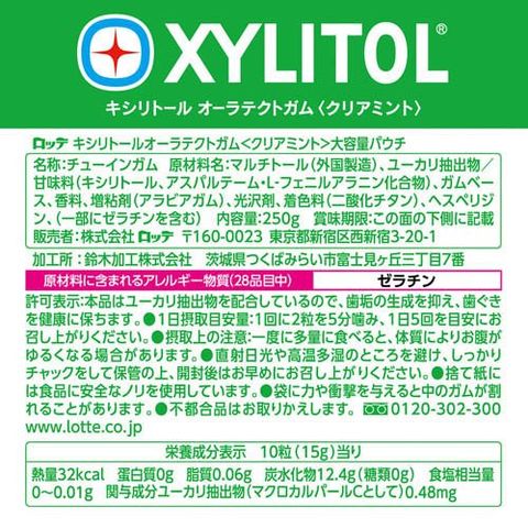 【キシリトール オーラテクトガム クリアミント 大容量パウチの商品詳細】