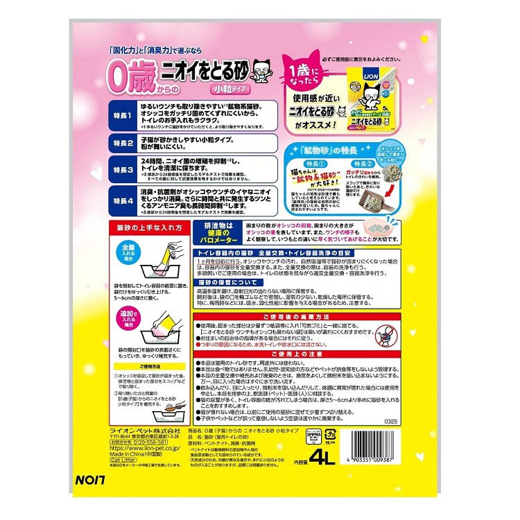 0歳子猫からのニオイをとる砂 小粒 (4L)