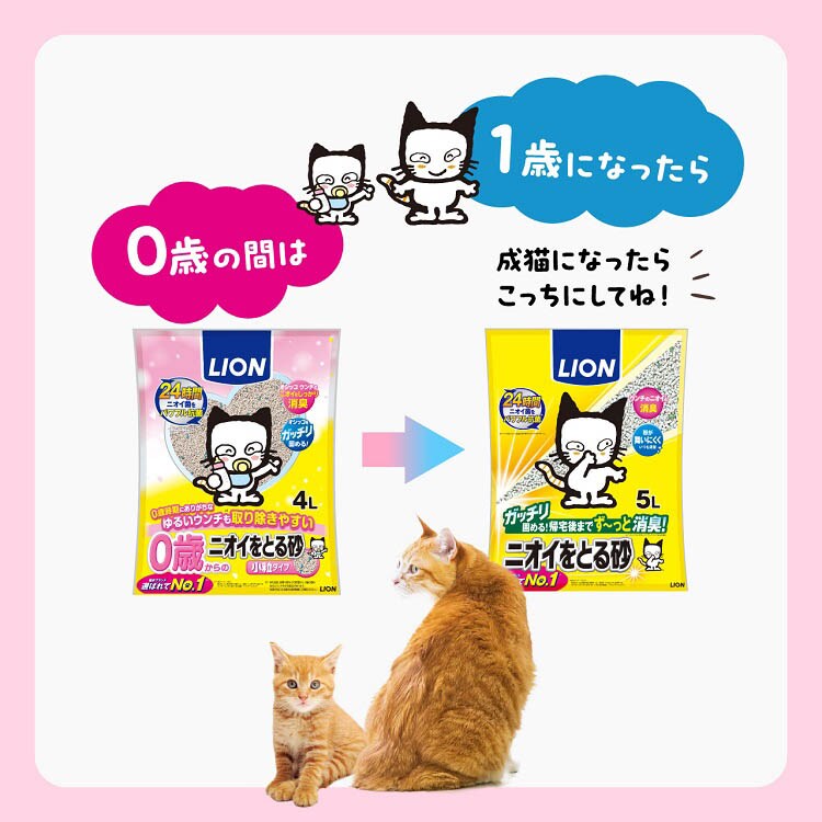 ●「0歳からのニオイをとる砂4L」が1袋入りのセット品。