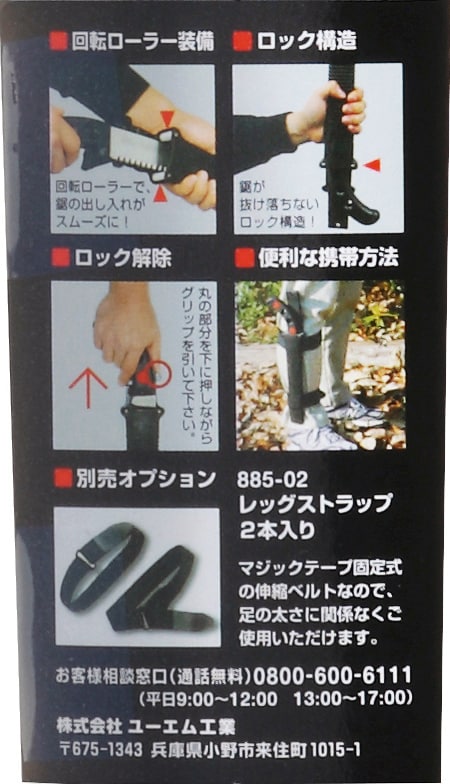 ・全長:収納時380mm(鞘入り時)・使用時345mm
