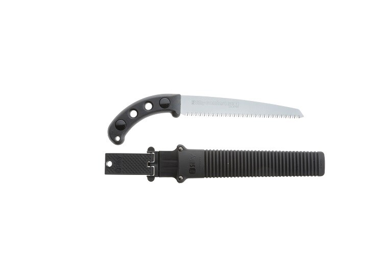 刃と本体が一体型で安定性に優れた鞘入り鋸です。剪定から仮枠作業まで行えます。鏡面研磨仕上げにより、切断面が綺麗に仕上がります。鞘にローラーを装備しているので、抜き差しをスムーズに行えます。鞘にロック機能がついているので、鋸が抜け落ちる心配がありません。変角目立てにより、根元はなめらかに、先端はダイナミックな切れ味を実現しています。