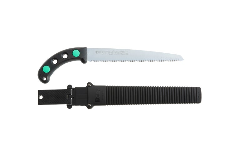 刃と本体が一体型で安定性に優れた鞘入り鋸です。孟宗竹の伐採や細枝の剪定に適しています。鏡面研磨仕上げにより、切断面が綺麗に仕上がります。鞘にローラーを装備しているので、抜き差しをスムーズに行えます。鞘にロック機能がついているので、鋸が抜け落ちる心配がありません。変角目立てにより、根元はなめらかに、先端はダイナミックな切れ味を実現しています。