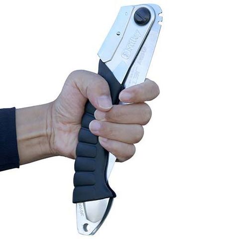 | ・刃渡り:210mm。 ・目数:12枚目。 ・切幅:1.1mm。 ・重さ:200g。 ★材質 ・刃部:特殊刃物鋼材。 ・ハンドル:アルミ。 |