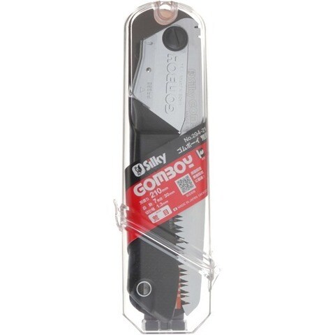 生木へグイッと食い込む、ゴムボーイシリーズの剪定鋸です。比較的荒い目数が切れ味(切断スピード)を高めるため、造園剪定に適しています。絹の切れ肌のような切り口に仕上がるので、皮巻きが早まり、病気から木を守ります。鏡面研磨仕上げにより、切断面が綺麗に仕上がります。折込タイプで携帯性がよく、ワンタッチ開閉ができるため、不安定な場所でも便利にお使い頂けます。