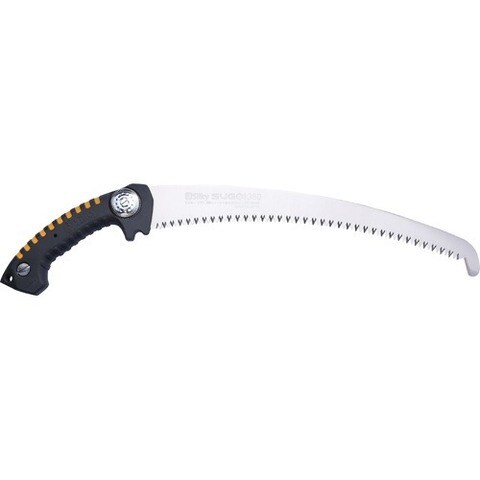 | ・刃:鋼(SK-4) ・ゴムハンドル ・刃長:360mm ・目数(30mm):6.5枚目 ・刃厚:1.8mm ・切幅:1.75mm ・全長:収納時570mm(鞘入り時)・使用時555mm ・重量:655g ・アサリ無し・未来目・目立て直し可能 ・ゴムハンドル・ハードクロームメッキ ・用途:生木剪定・枝打ち・間伐用鋸 |