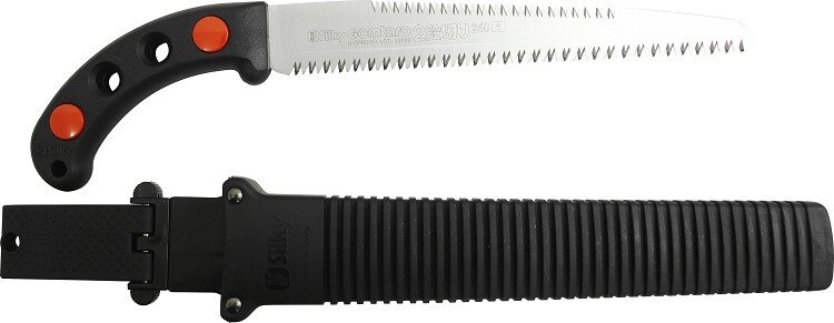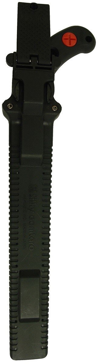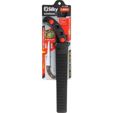 | ・ブレード:SK-4 ・ハンドル:加硫合成ゴム ・ネジ:プラスチック ・刃長:通常刃240mm・背刃(バックティース)120mm ・目数(30mm):通常刃8枚目・背刃(バックティース)10枚目 ・刃厚:1.4mm ・切幅:通常刃1.3mm・背刃(バックティース)1.0mm ・全長:収納時410mm・使用時370mm ・重量:325g ・アサリ無し・衝撃焼入・未来目 ・ゴムハンドル・ハードクロームメッキ ・用途:生木の剪定や枝打ち用鋸 |