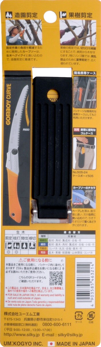 ゴムボーイがカーブ刃になって、コンパクトで切れ味抜群です。比較的荒い目数が切れ味(切断スピード)を高めるため、造園剪定に適しています。絹の切れ肌のような切り口に仕上がるので、皮巻きが早まり、病気から木を守ります。刃が緩やかなカーブを描いていることで、刃先が自然に食い込み、驚くほどの切断スピードを実現し、疲労も軽減されます。