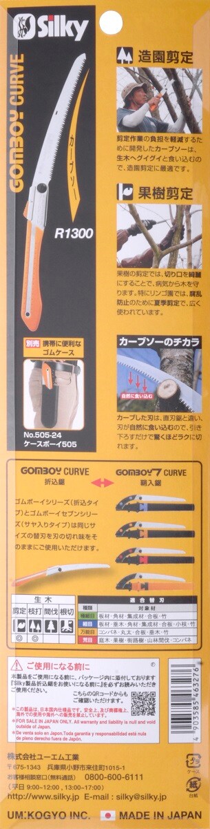 ゴムボーイがカーブ刃になって、コンパクトで切れ味抜群です。比較的荒い目数が切れ味(切断スピード)を高めるため、造園剪定に適しています。絹の切れ肌のような切り口に仕上がるので、皮巻きが早まり、病気から木を守ります。刃が緩やかなカーブを描いていることで、刃先が自然に食い込み、驚くほどの切断スピードを実現し、疲労も軽減されます。