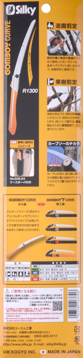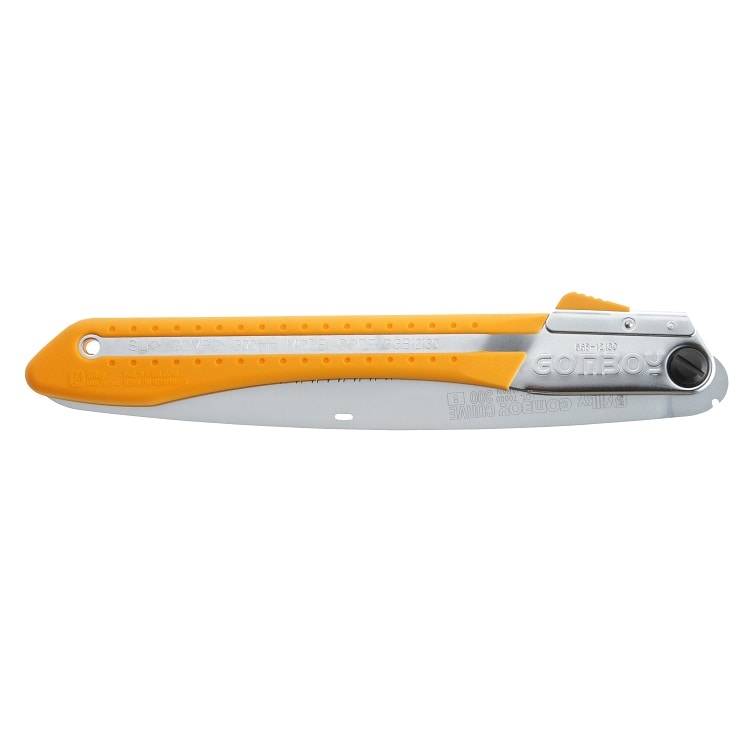 ゴムボーイがカーブ刃になって、コンパクトで切れ味抜群です。比較的荒い目数が切れ味(切断スピード)を高めるため、造園剪定に適しています。絹の切れ肌のような切り口に仕上がるので、皮巻きが早まり、病気から木を守ります。刃が緩やかなカーブを描いていることで、刃先が自然に食い込み、驚くほどの切断スピードを実現し、疲労も軽減されます。