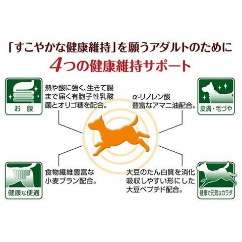 ●「すこやかな健康維持」を願うアダルトのために4つ(お腹、皮膚・毛づや、健康な便通、健康で元気なカラダ)の健康維持サポート。