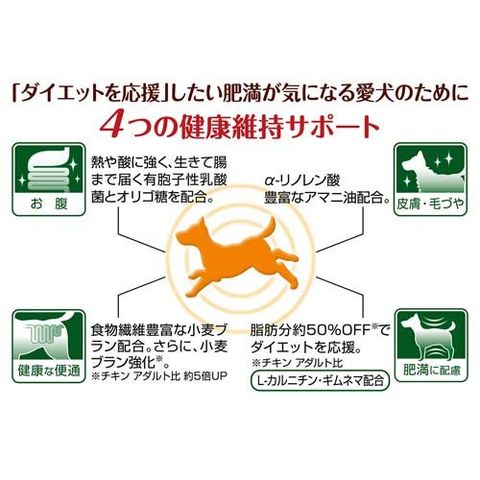 ●4つ(お腹、皮膚・毛づや、健康な便通、肥満に配慮)の健康維持サポート。