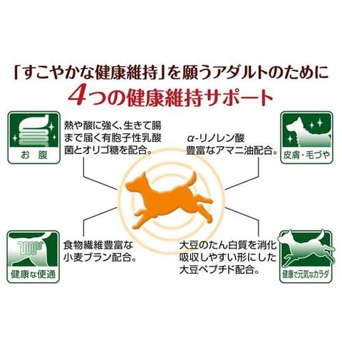 ●「すこやかな健康維持」を願うアダルトのために4つ(お腹、皮膚・毛づや、健康な便通、健康で元気なカラダ)の健康維持サポート。