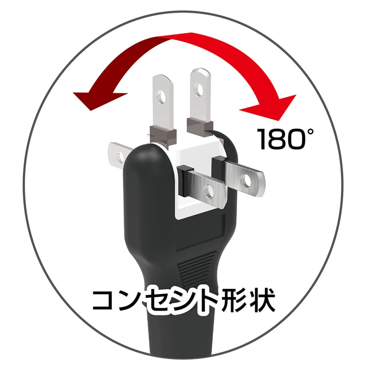 ●180度スイングプラグなので狭い場所でも配線しやすい。