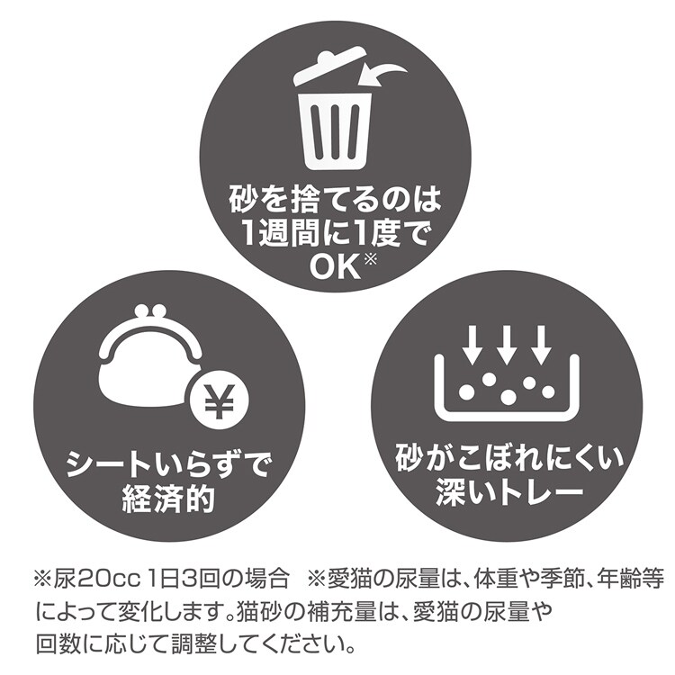 (2)猫砂をスノコに入れた際、粉末がトレーに落ちる場合がありますが。消臭効果がありますので捨てずにご使用ください。