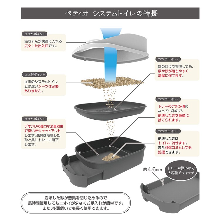 【ペティオ 猫システムトイレセット トイレに流せる猫砂 デオンDサンド入の商品詳細】